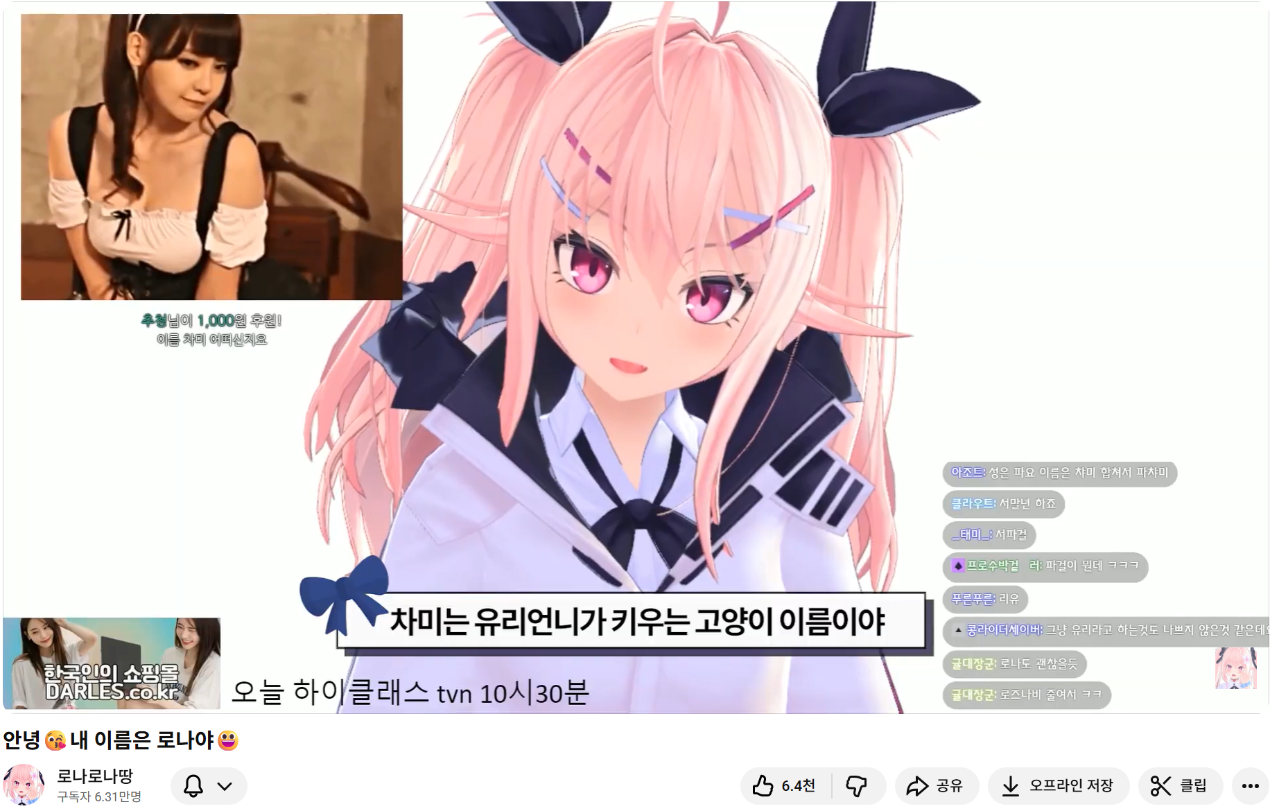 버추얼 크리에이터 로나. 성우 서유리가 연기했다. (통상 버추얼 크리에이터는 연기자의 정체를 밝히지 않는다.) ⓒ로나로나땅 채널 캡처 |