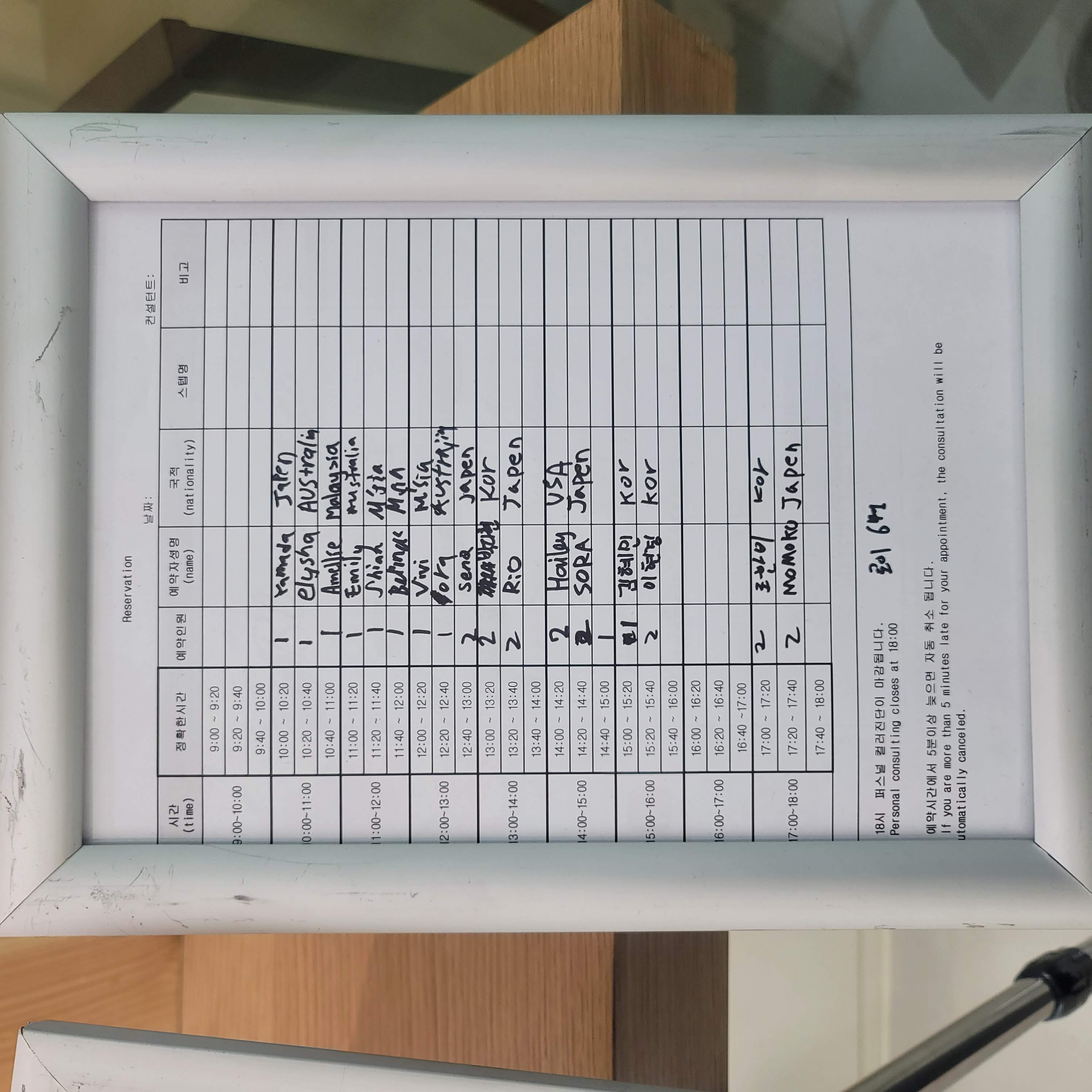 와이레스 퍼스널 케어 예약자 명단. 대부분 다양한 국적의 외국인이었다. ⓒ커넥터스 |