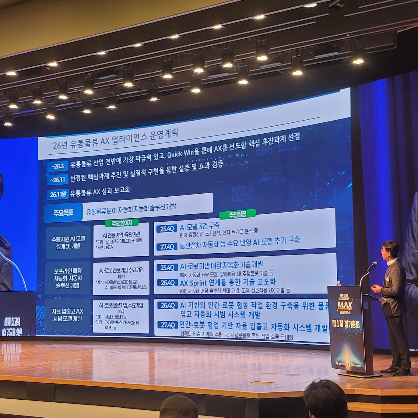 이를 반영하듯 산업부는 맥스 얼라이언스 분과 중 하나로 ‘AI 유통분과’를 합류시켰고, 11월에는 ‘AI 유통·물류 분과’로 확대 개편했습니다. 유통·물류는 그 자체로 팩토리, 로봇, 자율운항선박, 미래차 등 다른 분과들과도 직간접적으로 맞물리며, AX 정책의 성패를 가르는 시험장이 되고 있습니다.